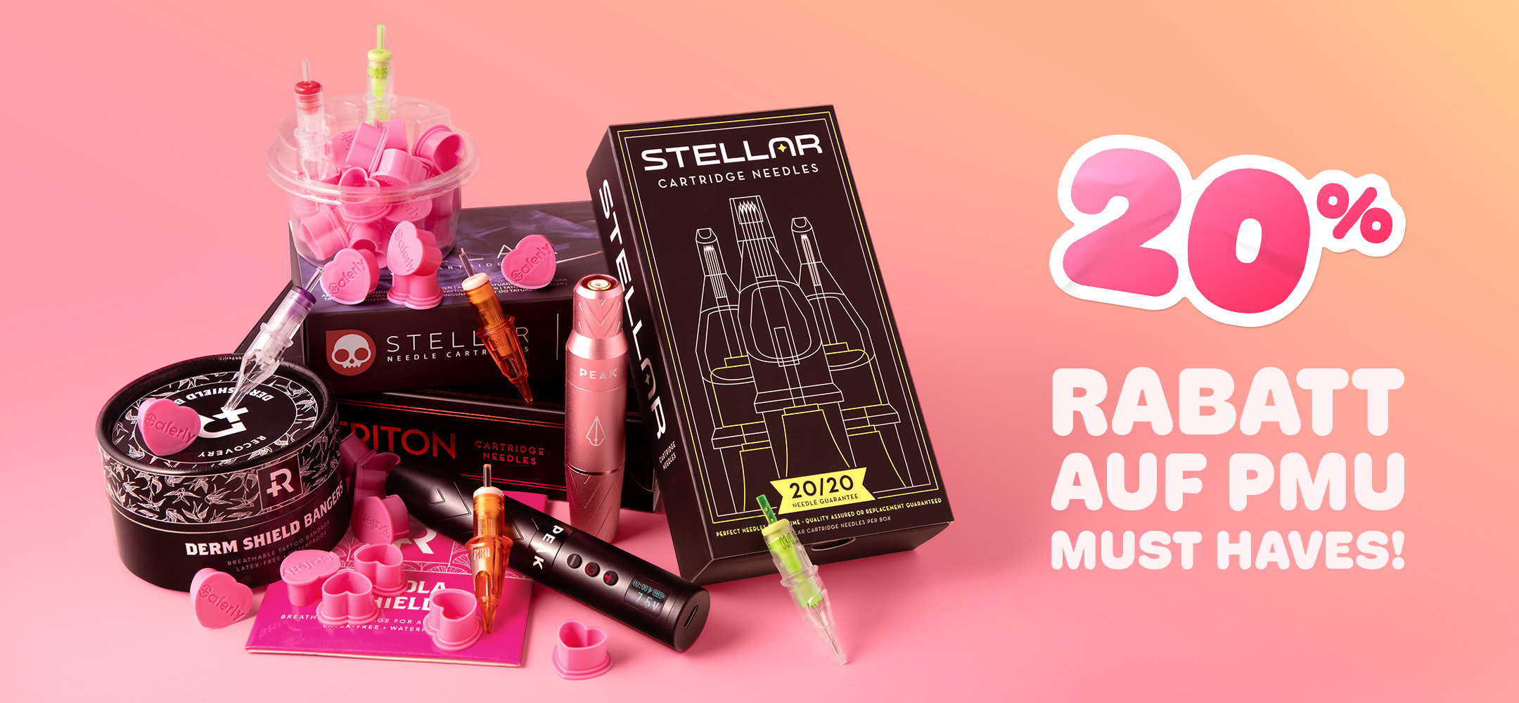 Starte ins neue Jahr mit einem Glow-up! Genieße 20 % Rabatt auf eine Auswahl an hochwertigen Nadelmodulen, Maschinen, Pflegeprodukten und anderen Essentials von Marken, denen du vertraust – darunter Peak, Recovery, Saferly und Killer Ink.